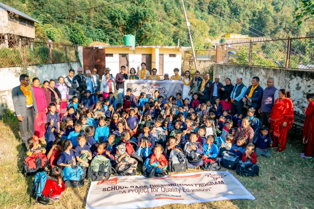 ネパールの山岳地帯・ラスワ郡でスクールバッグを寄付しました